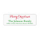 Angepasste, personalisierte, einfache, elegante, festliche grün und rot Typografie / Drehbuch / Schriftart, Frohe Weihnachten / Happy Holidays / Saison's Gruß Rückkehr Adresse Etikett. Geben Sie einfach den Familiennamen / Braut & Bräutigam / Ehefrau & Ehemann Namen, und Adresse, um sich anzupassen.