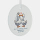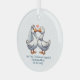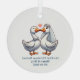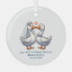 Celebrate your first Christmas married with this adorable personalized wedding ornament featuring two cartoon geese dressed as bride and groom! This custom newlywed ornament makes the perfect gift for newlyweds, wedding gift, or bridal shower keepsake. Available in glass, ceramic, or metal, it adds a whimsical and heartfelt touch to any tree.