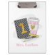 Diese erste Klasse Lehrer Zwischenablage ist ein niedliches Lehrergeschenk. Das Muster hat ein schwarzes Polka Dot Notizbuch mit einem goldenen Notizbuch, Herzkaffee, Lineal, Stift und Bleistift. Dieses schwarze Polka Dot Notizbuch Design kann auf anderen Artikeln in meinem Shop gefunden werden, PageCreativeDesigns.