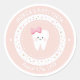 Personalisierte Dekoration aus dem First Tooth Party. Pfirsichrosa Aufkleber mit niedlichem Säuglingzahn, bearbeitbarer Name und Meilensteindatum. Besuchen Sie den Shop, um alle Kollektionen von First Tooth zu sehen.