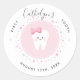 Personalisierte Dekoration aus dem First Tooth Party. Pfirsichrosa Aufkleber mit niedlichem Säuglingzahn, bearbeitbarer Name und Meilensteindatum. Besuchen Sie den Shop, um alle Kollektionen von First Tooth zu sehen.