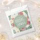 Personalisierte Boho Brautparty Gefälligkeitstaschen mit dem Namen der Braut und dem Datum des Brautparty. Ein lustiges und farbenfrohes Brautparty-Gefallen-Accessoire, das zum böhmischen Brautparty-Thema passt. Ein elegantes und stilvolles Blumenstrauß mit gedämpften Rose in Rot und Weiß mit grünen Botanikalen schmückt das weiße Brautparty.