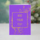 Eine individuell gestaltete Blumenkarte eignet sich hervorragend, um einen persönlichen Gruß oder eine persönliche Ankündigung zu versenden. Die Karte zeichnet sich durch ein elegantes Blumendesign in echter Goldfolie aus und wird in lila dargestellt. Sie können die Vorderseite personalisieren und eine besondere Nachricht an der Innenseite hinzufügen. Verwenden Sie die Vorlage zum Personalisieren.
