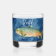 Custom Fly Fisherman Vater Geschenk. "Drehend Phantastischer Vater" mit Aquarellforelle. Es ist mit einem Namen auf einem Whiskyglas mit Monogramm. Dieses Whiskyglas kann leicht mit dem eigenen Sprichwort und dem Namen des Vaters personalisiert werden.