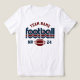 Benutzerdefinierter Fußball Name und Spielernummer T - Shirt für Mama - im White Design für Fußballmütter gezeigt, sind Retrobuchstaben und Sondertexte enthalten, die mit einem Mannschaftsnamen und der Jerseynummer des Spielers personalisiert werden können. Dunkelrot und marineblau können individuell angepasst werden.