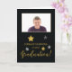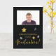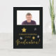 Fügen Sie ein lustiges Foto für eine große persönliche Gratulationskarte für den Absolvent! Schwarze Set von den goldenen und silbernen Sternen und Botschaft zu gratulieren, zu ihrem Abschluss. Genauso gut für Typ oder Mädchen.