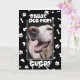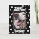 Eine individuelle Foto Muttertagskarte für Hundemütter! Auf dieser Karte finden Sie ein individuelles Foto Ihres Zornfreundes sowie einen spielerischen Rahmen aus Pfotendrucken, Hundeknochen und Herz. Das Design ist perfekt, um die besondere Bindung zwischen Müttern und ihren vierbeinigen Kindern zu feiern. Sie können auch den Text innerhalb der Karte anpassen, um ihn für Ihre Mama aus ihrem Lieblings-Pelzbaby einzigartig zu machen. Gib der besten Hundemama, die je ein Muttertag war, den sie nie vergessen wird. (Ändern Sie ein paar Worte, und diese Karte wird auch zum Geburtstag perfekt!)