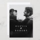 kundenspezifisches Couple Foto mit beruflich gemalt Aquarellfarben Schwarz, Weiß und Silber abstraktes Overlay mit Namen vorne und Details hinten.