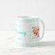 Custom Foto Soft Calm Blue Muster Mutter Muttertag Mama Mama Tee Kaffee Tasse. In hübschen Pastellblau-Grün-Farben, in einem modernen geometrischen Muster. Zum Abkühlen von Frühlings- und Sommergetränken. Ändern Sie die beiden Fotos in Ihre eigenen Bilder, und fügen Sie Ihren eigenen Text, um fröhliche familiäre Erinnerungen zu feiern. Kaufen Sie als preisbewusstes Weihnachtsgeschenk für sie, neue Mütter, Mama, Ehefrauen oder Großeltern, von Ihnen oder Ihren Kindern.