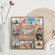 Custom Foto Collage Family Liebe Script Wood Quadratische Wanduhr