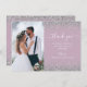 Custom Foto Dusty Lilac Silver Glitzer Wedding Dankeskarte