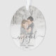 Custom Foto First Christmas Verlobt Grau Script Ornament
