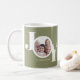 Diese moderne Weihnachtsferien-Foto-Tasse ist mit dem Wort JOY in Weiß auf einem schlauen grünen Hintergrund dekoriert. Einfach mit Ihrem Foto und Namen anpassbar.