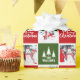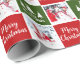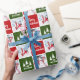 Benutzerdefiniertes, grünes, rotes und weißes "Frohe Weihnachten" Packpapier mit Familienname, 2 benutzerdefinierten Fotos und einem Baummuster. Ideal, um Ihre Weihnachtsgeschenke in dieser Winter- und Feiertagssaison einzupacken.