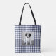 Die Tasche aus dem Foto ist mit einem feinen, weißen Rahmen und einem karierten Rahmen aus Gingham-Karo in Weiß und Blau ausgestattet. Ersetzen Sie das Foto der Probe einfach in der Sidebar. Macht ein wunderbares personalisiertes Geschenk. Um das Design Navy Blue und White Gingham Muster auf anderen Gegenständen zu sehen, klicken Sie auf den Link "Rocklawn Arts". Digitales Bild. Copyright ©Claire E. Skinner ohne Beispiel-Foto. Alle Rechte vorbehalten.