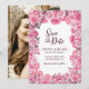 Diese elegante rosa Blumen Hochzeit speichern das Datum ist für Paare auf der Suche nach Eleganz und zeitlose Schönheit bei der Ankündigung ihres besonderen Tages für Liebhaber. Ihr Lieblings-Foto von Ihnen und Ihren Geliebten kann auf der Rückseite eingeschlossen werden, was dieses rett-the-Date zu einer wahrhaft einzigartigen Ankündigung macht, wenn Sie Freude an den Mailboxen Ihrer Gäste wecken und mit diesem Rett-the-Date Aufregung für Ihre kommenden Neuheiten wecken.