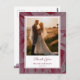Mit unserer "Custom Foto Romantic Floral Danke Postcard" bedanken Sie sich ganz schön dafür. Diese elegante Karte besticht durch ein hübsches, rosa Rose-Design, das mit romantischen Blumenakzenten geschmückt ist. Hier können Sie Ihr Foto von einem besonderen Tag an präsentieren. Es ist aus hochwertigem Cardstock gefertigt und bietet ein luxuriöses Ambiente und gleichzeitig viel Platz für Ihre herzliche Nachricht. Ideal, um Ihren Gästen zu danken, dieses personalisierte Dankeschön Postcard fügt eine charmante Touch, dass sie Schatz lange nach Ihrer Hochzeit!