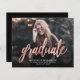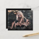 Moderne Abschluss-Ankündigung mit einem maßgeschneiderten horizontalen Foto. Das Wort "Absolvent" erscheint in der Rose Gold-Imitat-Folienskript, mit dem Namen des Absolventen, Schule und Jahr des Abschlusses unten in weißen Sans Serif Schriftart. Ersetzen Sie das Beispielbild einfach durch das Foto Ihres eigenen Absolventen. Ein Schwarzer Farbverlaufsbildschirm trägt dazu bei, die Pop des Textes zu gewährleisten. Das Gegenteil ist schwarz. Ideal für High School oder Uni-Abschluss.