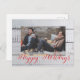 Wunderschöne moderne, benutzerdefinierte Foto Weihnachtskarte für die Familie. Holzboden. Text: 'Happy Holidays' in rot. Erstellt mit einem Lächeln von iolantesdesigns :-)!