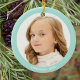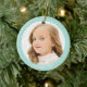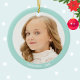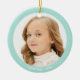 Maßgeschneidertes Girl-Foto mit hellblauen aquamarinen Rahmen und Text Ornament. Text und Datum sind personalisiert.