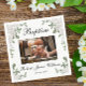 Personalisierte Foto Servietten für Ihre Taufe. Elegantes Typografie-Design für das Skript und den weißen, floralen Rahmen Hintergrund.