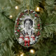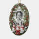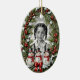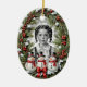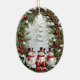 Ein ovales Weihnachtsschmuck, in dem Ihr individuelles Foto und Ihre Botschaft in einem bezaubernden Vintagen Kiefernkranz mit Schneemännern gerahmt werden.