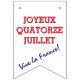 Maßgeschneiderte, patriotische französische BASTILLE DAY Bunting Fahnen. Ein Design zeigt die Kontur der Landkarte, kombiniert mit der TRICOLORE-Fahne von FRANKREICH mit dem französischen Motto Liberté, Egalité, Fraternité - und dem Eiffelturm (Tour Eiffel). Dieser wechselt mit dem zweiten Design, das es liest Joyeux Quatorze Juillet (beleuchtet 14. Juli) in fett roten Typografie und Vive La France in blauen Schrift Typografie. Alle Texte auf diesem zweiten Design ist CUSTOMIZABLE, sodass Sie die Formulierung, z.B. ändern Sie den Gruß, fügen Sie Ihren Namen, etc. personalisieren können. Dieses bunting wäre eine großartige Ergänzung zu Ihren Bastille Day Feiern. Die passenden Party, Kleidung, Karten und Geschenke stehen zur Verfügung.