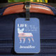 Beginnen Sie den Urlaub früh mit diesem niedlichen Gepäckanhänger der französischen Silhouette, auf dem steht: "Das Leben am Strand ist besser" in sanftem Blau und Rosa. Sie können das Design auf beiden Seiten haben und mit Ihrem Namen anpassen ODER gehen Sie für die Single-seitige Version mit der Karteneinlage auf der anderen Seite.