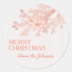 Custom Frohe Weihnachten Pink Glitzer Kiefernzweig Runder Aufkleber