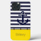 Zeitgenössischer Schiffsanker auf einem klassischen blau-weißen Streifen Muster auf gelb. Set mit nautischen Seil, macht Raum zu personalisieren oder anpassen mit Namen, Initialen oder Monogramm auf einem korallenroten Hintergrund. Schönes, modernes und cooles Cover für den Trend-erfahrenen und kunstliebenden angesagten Trendsetter, künstlerischer Motiv-Liebhaber, der will, ihr Handy vor Staub und Schmutz, Abnutzung und Tränen zu schützen. Dieses Design ist erhältlich Apple iPhone 6, 7 und 8 Plus, 10 oder X, XR, XS , 11, 12, und 13 Mini und 14 Pro Max Handy Hüllen. Zeigen Sie Ihren persönlichen Stil, sehen Sie modern aus und fühlen Sie sich stilvoll mit einem einzigartigen Design auf einem mobilen Zubehör Ihrer Wahl.