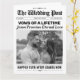 Machen Sie Ihre herzlichen Worte zu einem lustigen Sake mit dieser maßgeschneiderten Hochzeitszeitung mit ihren Gelübden! Dieses Design ist wie ein charmantes Vintages Papier gestaltet und hebt seine Versprechen, Erinnerungen und Lieben auf unterhaltsame und zeitlose Weise hervor. Ein kreatives Geschenk, eine Zeremonie-Ausstellung oder Jubiläumsmemento.