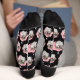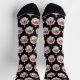 Funny Custom Hund Foto Crew Socken. Laden Sie das Lieblingsbild Ihres Tieres hoch und es wird automatisch auf beiden Seiten über die Socken repliziert. Design mit einer dunklen Blume und Punkten. Der schwarze Hintergrund kann durch Klicken auf die Schaltfläche geändert werden, um das Design zu bearbeiten.
