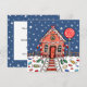 Eine farbenfrohe Abbildung eines festlichen Lebkuchenhauses. Im Außenbereich des Hauses gibt es zwei Süßspeisen und einen großen Lollipop-Baum im Garten. Der Boden ist mit hellen Weißzuckerschnee bedeckt und mit Süßigkeiten übersät.