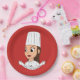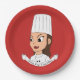 Personalisierte Papiertafel mit einer Illustration einer glücklich lächelnden Frau im Hut und Uniform des Koch, mit einer anpassbaren Textvorlage für Ihren Namen oder Ihre Nachricht