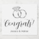 Diese individuellen Schaumweinetiketten sagen Glückwunsch, zusammen mit einem Set von silbernen und diamanten Hochzeitsringen mit den Brautnamen und den Namen der Zwerge am unteren Rand. Ideal für eine Verlobung oder Hochzeitsfeier!