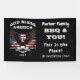 Gott segne Amerika geschrieben in fett weißer Schrift über einen Adler mit ausgebreiteten Flügeln vor einer antiken amerikanischen Flagge. 1776 ist rot in einem weißen Banner geschrieben. Der 4. Juli ist unten in Weiß geschrieben. Ändern Sie die Details auf dem Banner, um Ihr Party Anzug!