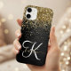 Custom Gold Glitzer Black Sparkgram Monogram Case-Mate iPhone Hülle