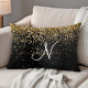 Custom Gold Glitzer Black Sparkgram Monogram Dekokissen