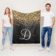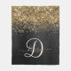 Custom Gold Glitzer Black Sparkgram Monogram Fleecedecke