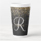 Dieses elegante, latte Tasse-Design mit hübsch vergoldetem Glitzer auf schwarz gebürstetem metallischem Hintergrund ist einfach zu personalisieren.