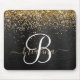 Custom Gold Glitzer Black Sparkgram Monogram Mousepad