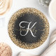 Custom Gold Glitzer Black Sparkgram Monogram Runder Pappuntersetzer