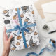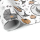 Dieses künstlerische und dennoch elegante Halloween Packpapier mit handgezeichnet Illustrationen in schwarzer Tinte von Nathalie Portet verfügt über 2 bearbeitbare Texte. Auf einem knusprigen, weißen Hintergrund zieren Bilder von Vintagen Babywagen, Hexenhüten, schwarzen Krähen, Kürbissen, Spinnweben, Kaulquappen und winzigen, gesprenkelten Pilzen dieses Packpapier. Ein Rahmen zeigt Ihren personalisierten Gruß ("Happy Halloween" kann in Glückwunsch, 1. Geburtstag", etc. geändert werden) und Namen. Ideal für Halloween Baby Duschen, 1. Halloween, 1. Geburtstag, 1. Oktober Baby, Neue Mutter, etc.