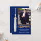 Blue & orange Custom Graduation Party Einladung. Fügen Sie das Datum, den Namen und das Foto des Absolventen an die Vorderseite dieser Abschluss-Karte, und personalisieren Sie Informationen auf der Rückseite. Card entworfen von Rycky Kreationen; Original-Kunstwerk mit weißer tassel©deliful-doodles. Kontaktieren Sie Künstler für eine Karte mit Ihren eigenen Schulfarben!