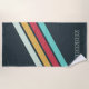 Farbenfrohe zeitgenössische Retro-Diagonal grün-weiß, helles türkisblaues Aqua, Korallenrot und sonnige gelbe Streifen Muster Design auf einem grüngrauen Hintergrund. Mit der Möglichkeit, mit dem Monogramm oder den Initialen Ihrer Wahl anzupassen oder zu personalisieren. Schönes, modernes und cooles Badetuch für den Trend-erfahrenen und kunstliebenden angesagten Trendsetter, Vintager Retro-Look Motiv-Liebhaber