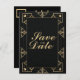 Ankündigungen für die individuell anpassbare Black and Gold Save the Date Postcard. Inspiriert von Hollywood und dem Great Gatsby aus den 1920er Jahren.