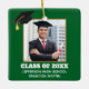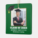 Dieses maßgeschneiderte grüne goldene Senior Graduate Weihnachtsschmuck zeigt Ihr Abschluss Foto unter einem schwarzen Graduierdeckel. Personalisieren Sie Ihre Unterrichtszeit, Schule und nennen Sie ein tolles Geschenk für einen geschlossen Schüler.