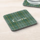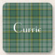 Großartiger, traditioneller, grüner, gelber, schwarzer und weißer Clan Currie karierter Untersetzer, mit weißem, benutzerdefiniertem Text, der fertig für die Personalisierung ist. Dieser hübsche Korkbacken-Untersetzer ist eine schöne Ergänzung zu jedem Tisch. Macht eine tolle Geschenkidee.