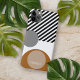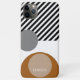 Zeitgenössische schwarze Streifen und grau, taupe beige, warme kaffeebräune Kreise und Streifen Muster auf weißem Hintergrund. Mit Raum zum Anpassen oder Personalisieren mit einem Namen, Monogramm Initialen oder kurzen Text Ihrer Wahl. Schönes, modernes und cooles Cover für den Trend-geschickten und kunstliebenden angesagten Trendsetter, künstlerischer Motif-Liebhaber, der will, ihr Handy vor Staub und Schmutz, Abnutzung und Tränen zu schützen. Dieses Design ist erhältlich in Apple iPhone 6, 7, 8, 10 oder X, XR, XS, 11, 12, 13 Mini, 14, 15 Plus, und Pro Max Handy Hüllen. Zeigen Sie Ihren Stil, sehen Sie in der Mode und fühlen Sie sich stilvoll mit einem einzigartigen Design auf einem mobilen Zubehör Ihrer Wahl.