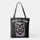 Trick oder gönnen Sie sich diesen typischen Retro-Stil, Halloween Katzenkätzchen-Tote-Tasche. Wie einfache Halloween-Silhouette-Bilder? Diese Halloween-Tasche hat eine Cartoon-Silhouette einer schwarzen Katze mit rosa Hervorhebung. Verlieren Sie nicht den Überblick, welcher Trick-oder-Leckerei-Sack zu welchem Kind mit diesem individuelle Name-Trick oder -Tasche gehört. Die Katze hat anpassbare Farben. Klicken Sie auf "Design bearbeiten", um die Farben zu ändern.